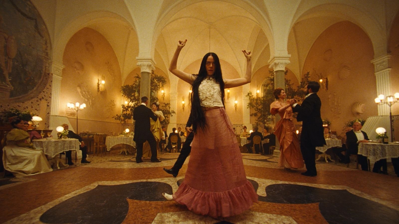 What I wasn't expecting going into this movie was how good the story was going to be. Lanthimos put so much thought into the story making it feel grounded, funny, and a bit sad. This weird combination made for some truly spectacular storytelling. If I were to describe it in more simple words it would be an NC-17 version of Gerwig's Barbie. On that thought, the extreme nudity and the sex scenes were quite essential to the plot in my opinion. What truly held the plot were the characters and the eccentric yet beautiful world created by Lanthimos. First off, I have to praise how well-written the character arc of Bella is! I absolutely love this eccentric and energetic character who's trying to find her place in this miserable world. Furthermore, I would like to praise how beautifully realized the world seen through the lens of Lanthimos was! Everything from the set designs to the surrealist imagery made for a feast for my eyes!